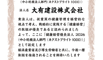 仲間との苦労や喜びを分かち合い、責任感を持って意欲的に取り組める人材を求めています。大有建設の仲間からだけでなく、地域の皆様から愛される、そんな人物になっていただきたいと考えております。