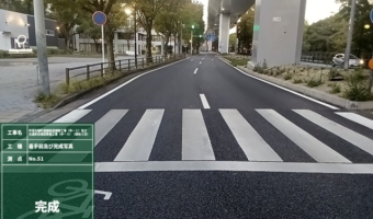 名古屋港コンテナヤード内にて低炭素(中温化)アスファルト混合物に