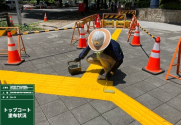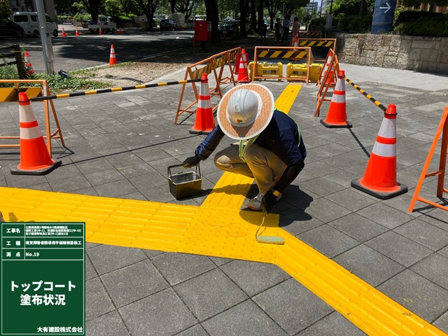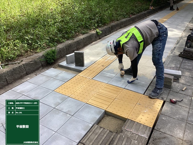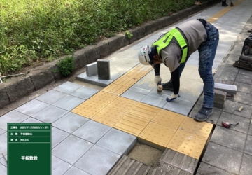 【昼間】平板舗装 429m2、視覚障害者誘導用平板舗装工 515m、平板補修塗装工 1199m