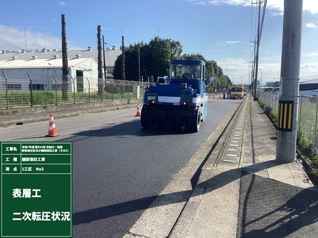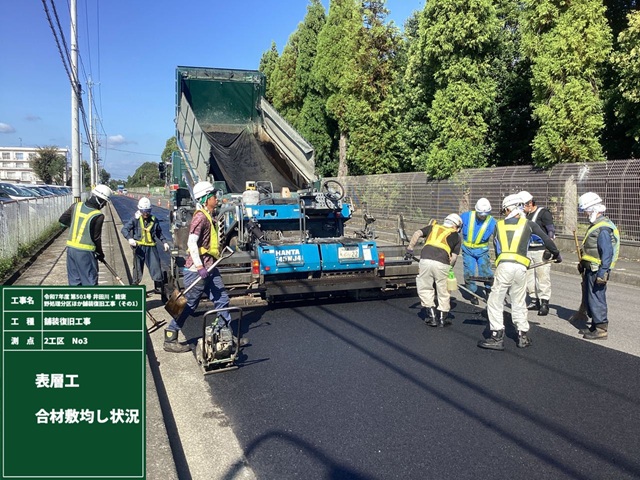 その結果、無事故・無災害で工事を完了することができ、工事発注者の方からは「非常にキレイな舗装」とお褒めの言葉をいただきました。
