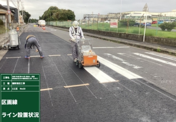 現場は住宅地に加え、工場および駐車場が両側に約400mにわたり連続する路線であったため、事前のPRや関係者との十分な打ち合わせを行い、施工を行いました。