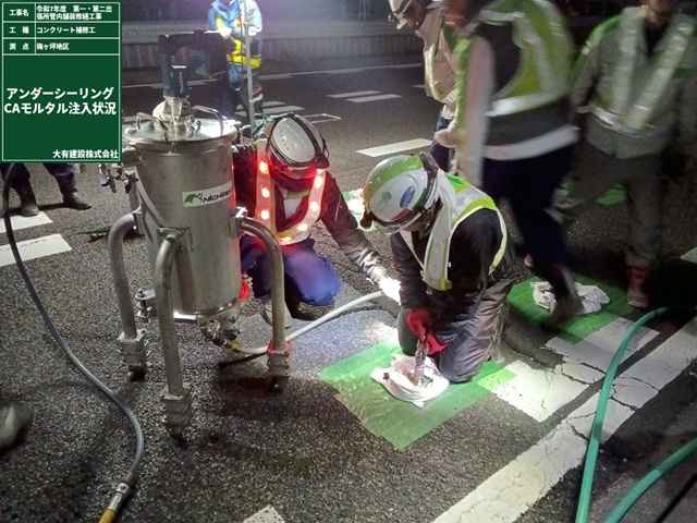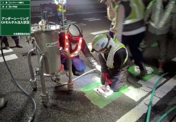 ④ 下層がコンクリート舗装である地区では、コンクリート版と路盤の間にできた空隙にアスファルトを充填するアンダーシーリング工法