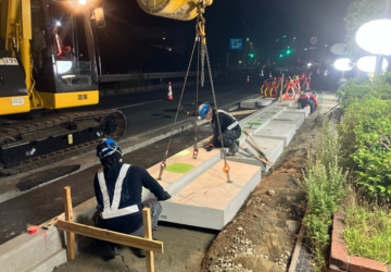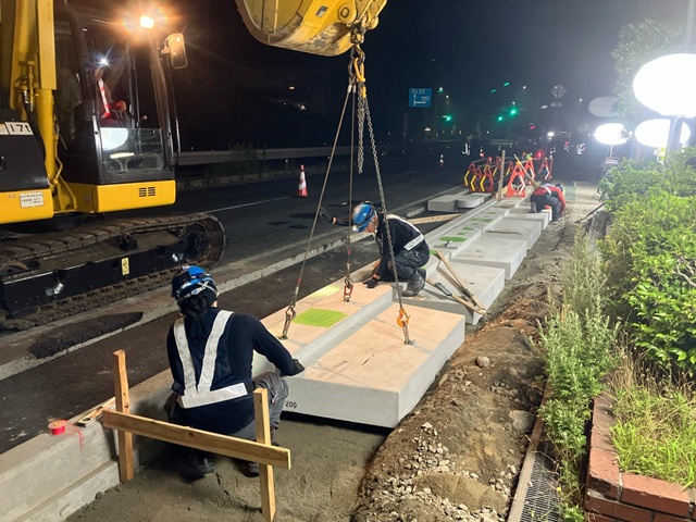 本工事は、広島県福山市の国道2号「大門駅南交差点」において実施した交差点改良工事です。周辺にはJFEスチール㈱福山地区が立地しており、通勤時間帯を中心に交通量が非常に多い交差点でした。右折車線の滞留長が不足していたことから、右折待ちによる渋滞や追突事故が頻発していました。本工事は、右折車線を2車線化することで交差点の混雑緩和および交通事故防止を図るものです。今回の工事では、右折車線を2車線化することで交差点の混雑解消を図りました。その結果、工事完成後は右折車線の渋滞が目に見えて減少し、利用されるドライバーの方々からは、走行のしやすさや混雑解消の喜びの声が寄せられています。